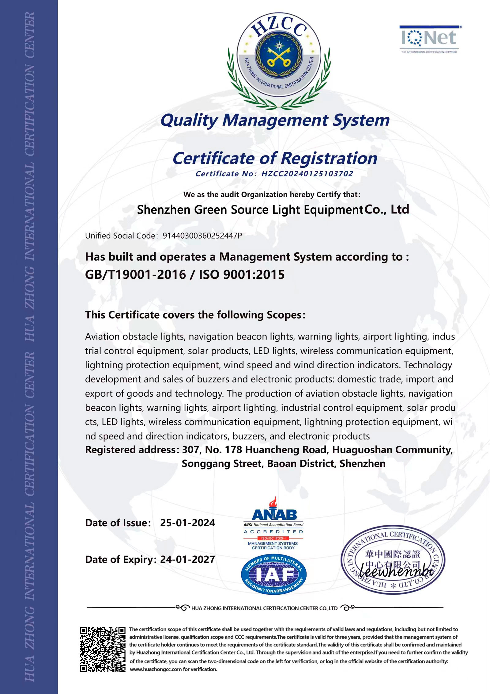 Our company has passed ICAO, IALA and ISO quality system certification. Our company is China Civil Aviation Certification Enterprise (CAAC).
